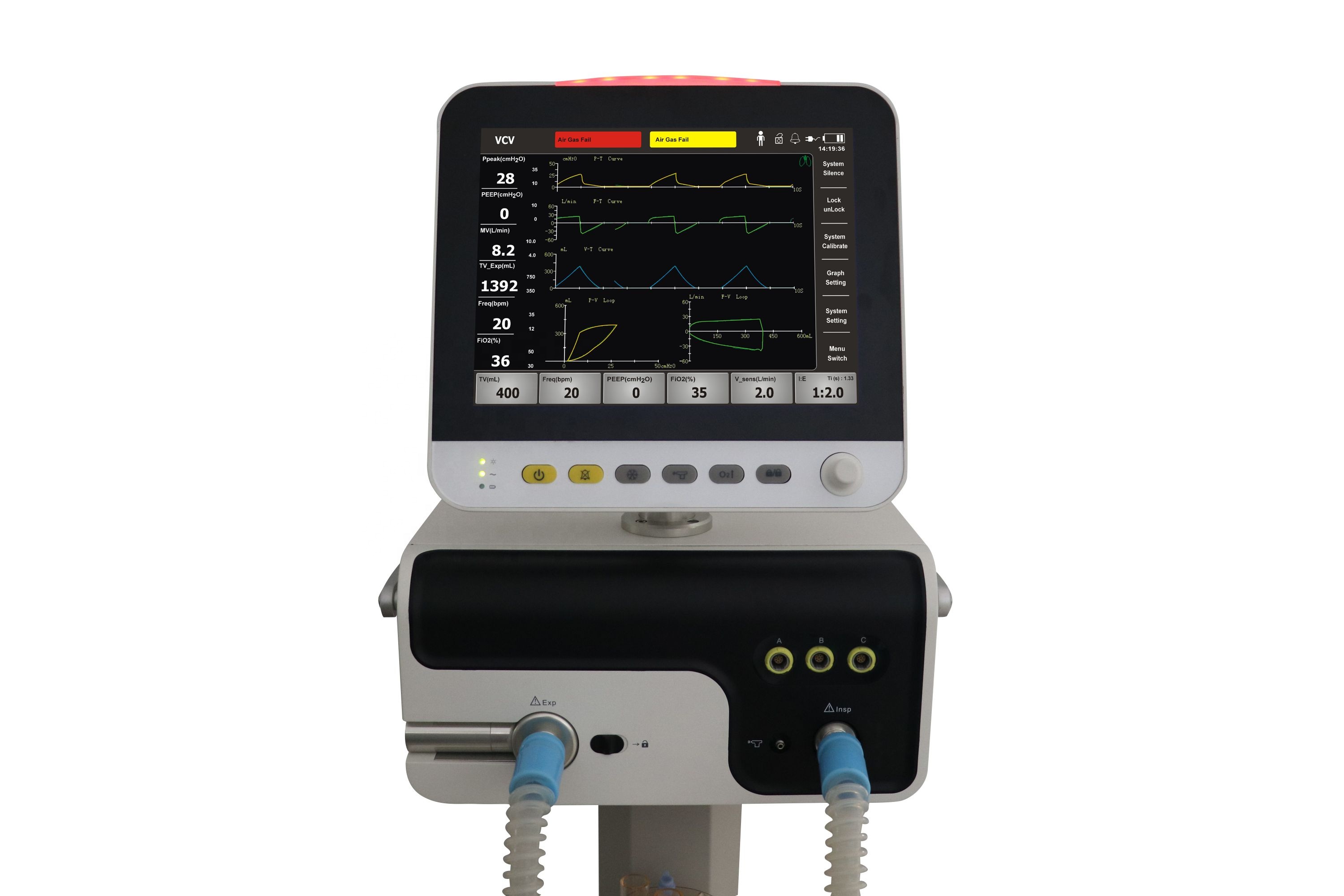 Simultaneously display of Three Waveforms&Two Loops,ETCO2 &SPO2High precious sensor and valve technology make sure the pressure , flowand volume monitor and control at high safety, stability and precisionwith sensitive pressure and flow double trigger function.